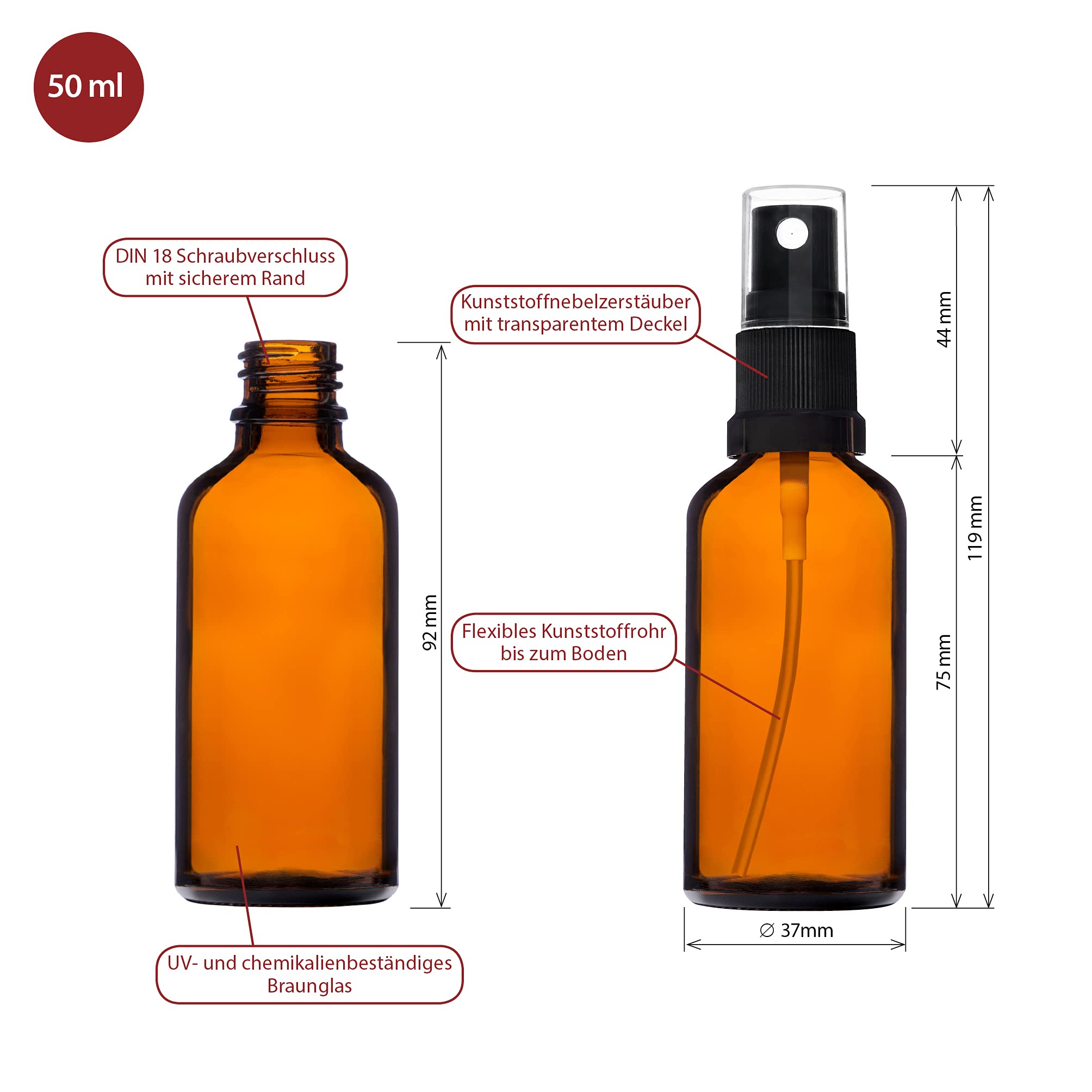 Diese Bernsteinflaschen-Sprühflaschen mit Zerstäuberkappe schützen Ihre Flüssigkeiten vor Sonnenlicht und erhöhen so deren Haltbarkeit. Geeignet für alle flüssigen Inhalte, Essenzen, Flüssigkeiten, Extrakte, Alkohol, Desinfektion, homöopathische Lösungen, Öle, Parfüms, DMSO und andere. Zur Aufbewahrung und Dosierung von Präparaten aller Art, Parfüms (Aromatherapie), Flüssigkeiten, zum Versprühen von flüssigen Zutaten beim Kochen und Backen… HandsUnity Glasflaschen ermöglichen Ihnen ein professionelles Arbeiten in einer sauberen Umgebung. Die Flaschen sind einfach zu benutzen: bequem und nachfüllbar. Der dicht schließende Deckel verhindert lästiges Auslaufen. Packungsinhalt: 6 Braunglasflaschen mit 30 ml Inhalt 6 + 1 Kunststoffsprühkopf mit Zerstäuber 1 x Spritze zum Befüllen der Flasche 1 x transparentes Schutzetikett für die Skala der Spritze 1 x stumpfe Dosierspitze 2 x 50 mm Luer-Lock 1 x Kunststoffschlauch, 3 x 1 mm, ca. 25 cm lang 1 x Kunststofftrichter 38 x 30 x 6,6 mm Packung mit leicht ablösbaren Papieretiketten (zur Kennzeichnung des Flascheninhalts) 60 x 40 mm